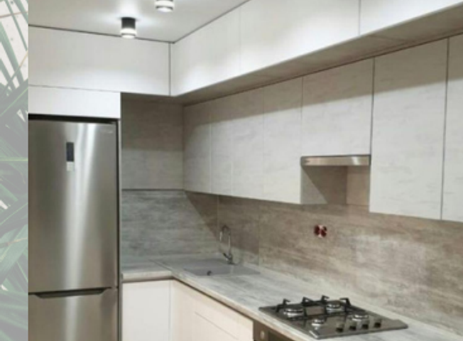 COCINA CERRADA CON ISLA LAVADERO DE ACERO INOXIDABLE, 2 POZAS , EQUIPADA CON LAVA VAJILLAS, REFRIGERADORA, ENCIMERA
